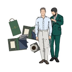 Begin your journey by meeting the Dalmut team and exploring a curated selection of fabrics, linings and details, including buttons and our signature foulards. Your measurements are then taken with precision, shaping a garment designed entirely around your body and your proportions.