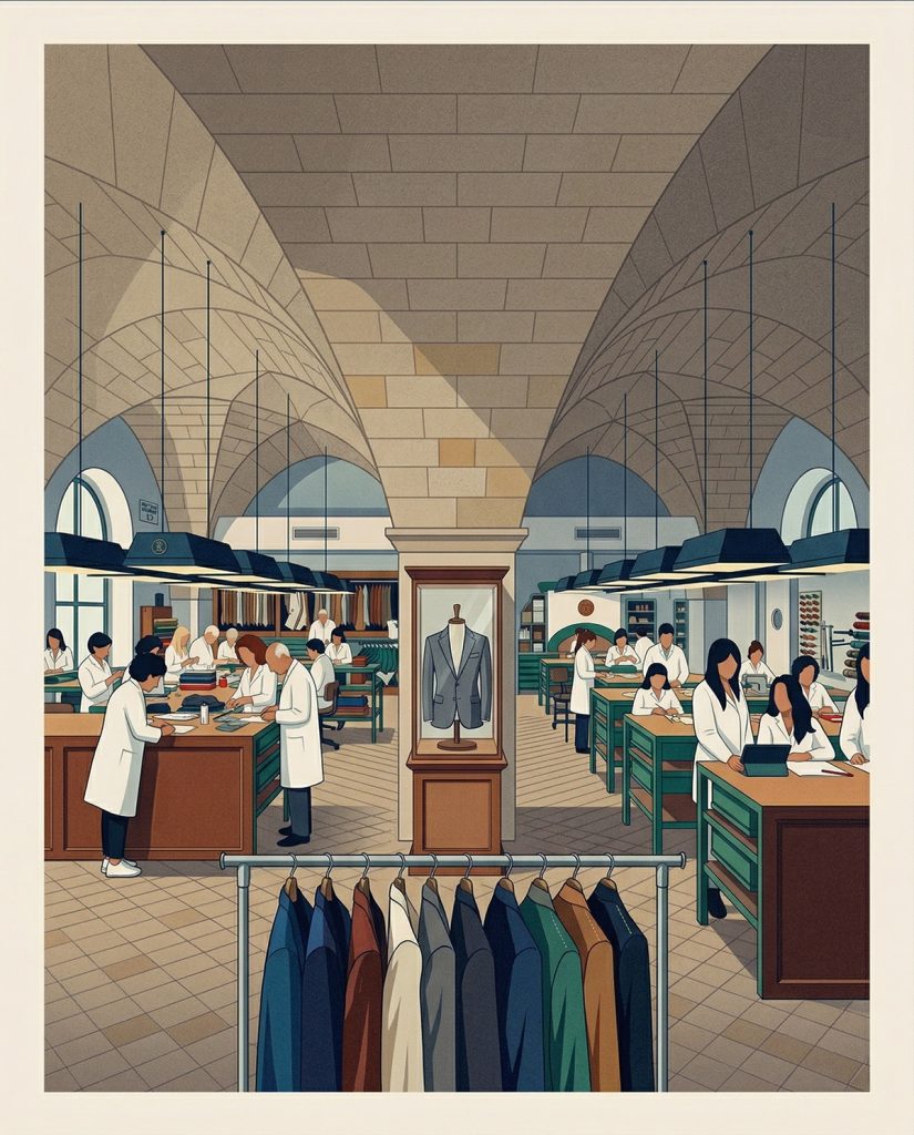 Every garment is shaped through a process guided by time, precision and human expertise, where each gesture carries intention and each step contributes to a result defined by balance, discipline and quiet mastery.